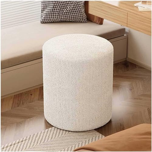 Tabouret ottoman velours agneau doux multifonction blanc cas...