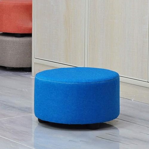 Repose-pieds rond bois massif, tabouret bas bleu salon