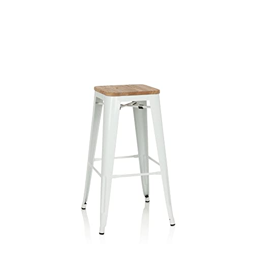 Tabouret de Bar VANTAGGIO High W Métal Blanc/Assise Bois fon...