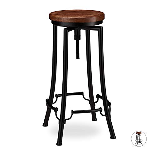 Relaxdays Pivotant Tabouret de Bar Noir/Marron 77,5x34x34cm