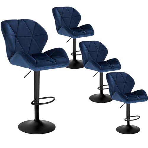Tabourets de comptoir modernes en velours bleu avec dossier...