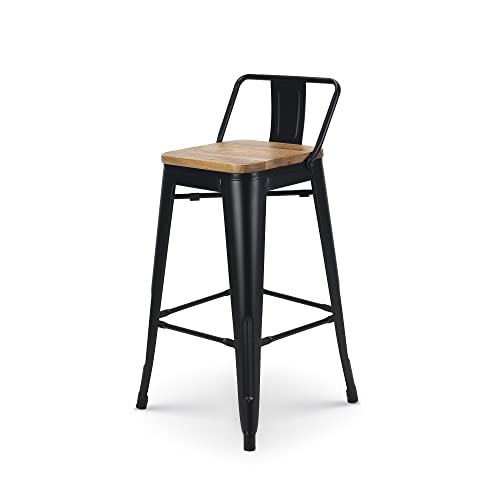 Kosmi Tabouret de Bar en Métal Noir avec Dossier et Assise B...