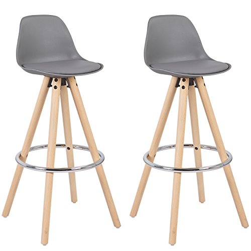 Woltu Lot de 2 Tabouret de Bar Gris Similicuir avec Repose-P...