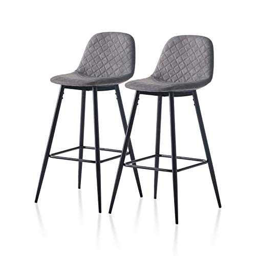 Tukaila 2 Tabourets Gris Faux Cuir Petit Déjeuner Chaises de...