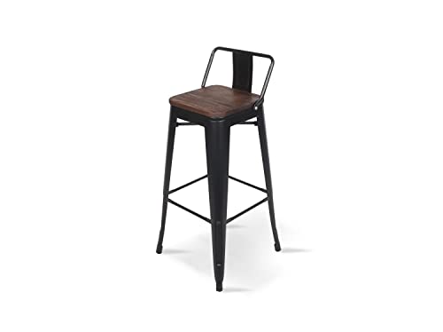 Kosmi Tabouret de Bar métal noir et bois foncé, dossier et c...
