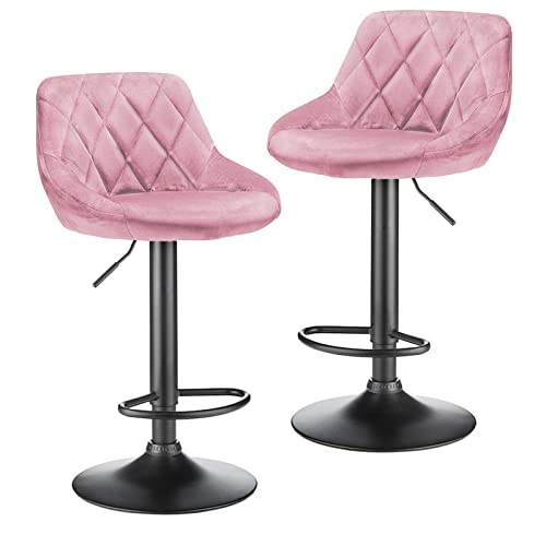 Tabourets de Bar Velours, Chaises Rotatives avec Dossier Rem...