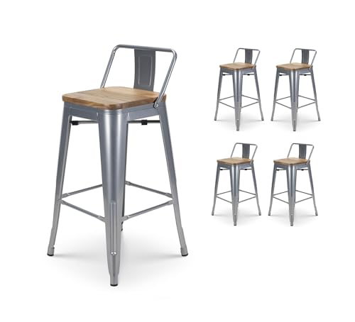 Kosmi 4 tabourets Bar Style Industriel métal Silver