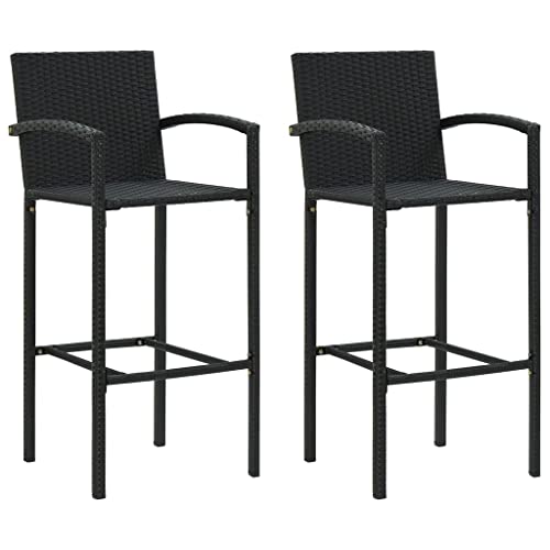 XL Tabourets Bar Noir Résine Tressée Lot 2