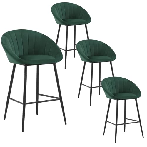 Tabouret Bar Vert Cuisine Velours 4 Chaises Fixes