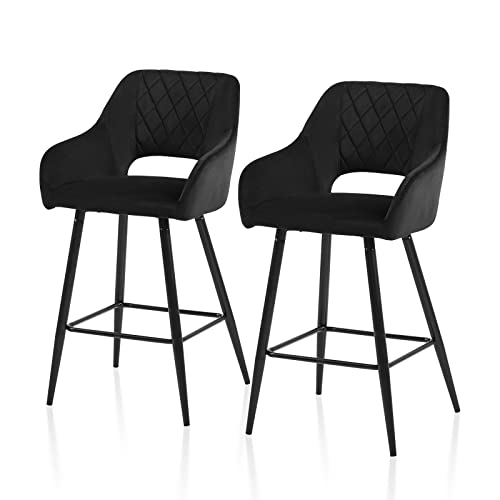 TUKAILA Lot de 2 tabourets bar velours doux, siège rembourré...