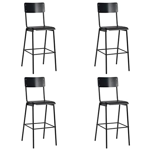 INlife Lot de 4 tabourets de bar massif acier noir