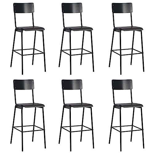 \"Lot de 6 tabourets bar noir en contreplaqué et acier\"