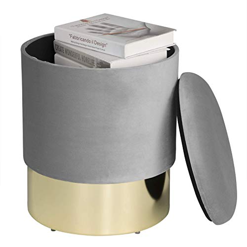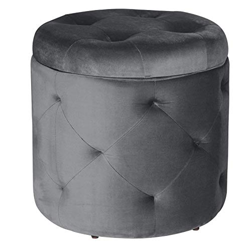 Tabouret Robuste Pouf Rangement Coffre Rond rembourré en Vel...