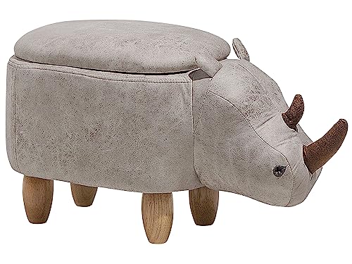 Petit Tabouret Enfant Rhinocéros PU Gris avec Coffre et Pied...