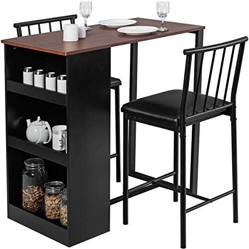 Costway Table Haute Cuisine 2 tabourets, Compartiments 3, De...