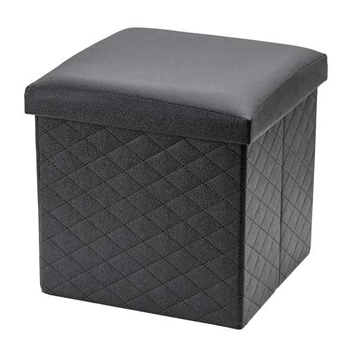 Pouf Cube Rangement Similicuir Noir 38x38x38 cm