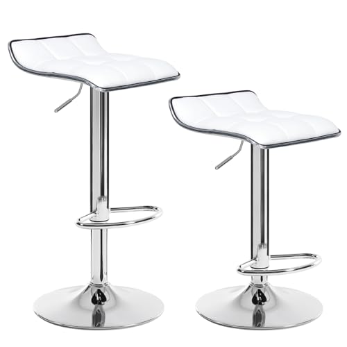 Woltu BH11ws Tabouret Similicuir Acier Chromé Rotatif Blanc