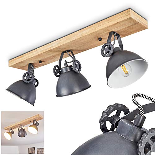 Plafonnier Svanfolk en bois et métal gris patiné, 3 spots de...