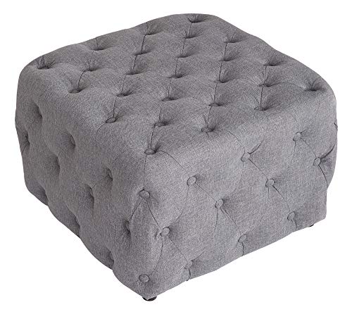 Tabouret bas pouf cubique Chesterfield gris clair rembourré...