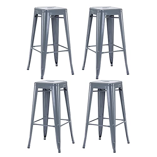 Tabouret Extérieur Industriel Gris, Lot 4 Empilables