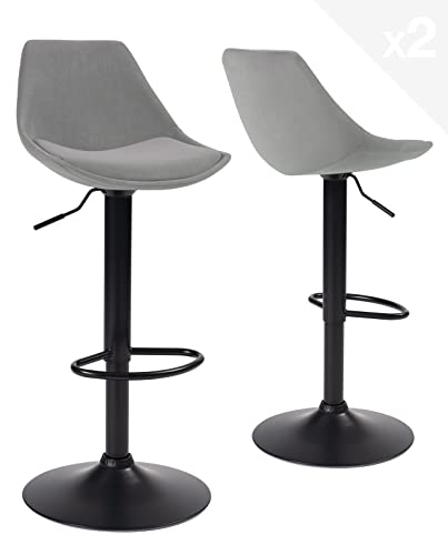 Tabouret de Bar Nolan Velours Gris, 360° Rotation, Hauteur r...