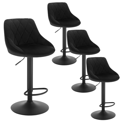 Tabouret de Bar 4 en Velours, 4 tabourets réglables, Noir BH...