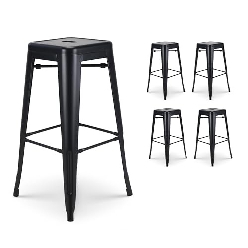 Tabouret de Bar VANTAGGIO High Métal Noir, Tabouret Industri...
