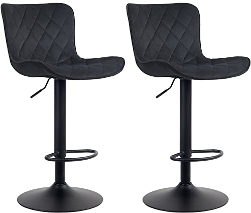 Tabouret de Bar Velours Noir Réglable Hauteur x1