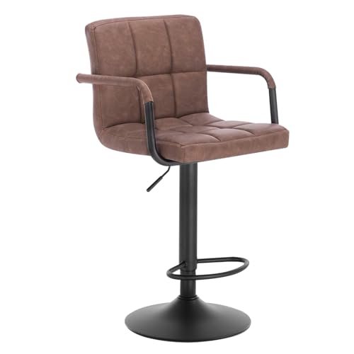 Woldu BH113dbr Tabouret Brun Rotatif Assise Similicuir Noir