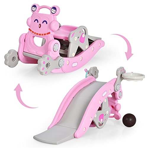 GOPLUS 4 en 1 Toboggan pour enfants avec panier, lanceur ann...