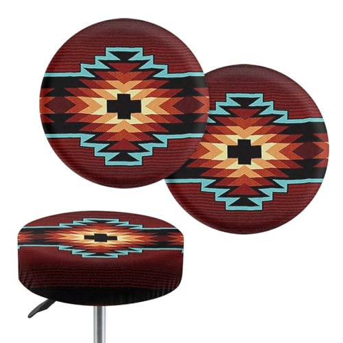 Lot de 2 housses extensibles tabouret rondes aztèque rouge c...