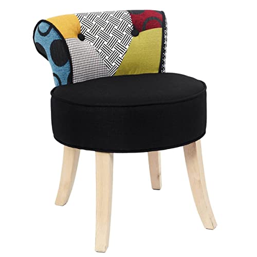 Tabouret Vintage avec Dossier Capitonné Motif Patchwork.