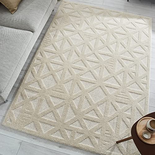 Tapis Rectangulaire 120x170cm Beige Motif Graphique.