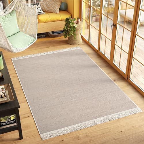 Tapis Azteca Tapis Coton Lavable Réversible Beige Moucheté S...