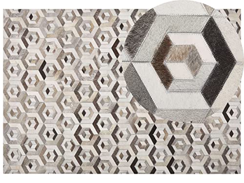 Tapis patchwork design en cuir naturel, motif géométrique ef...