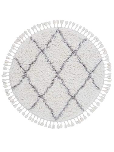 Surya Tapis Shaggy Poil Long Monochrome Rond 120cm Blanc