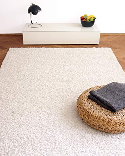 Tapis Shaggy Lavable Long Poil Blanc Dimension 160x230 cm