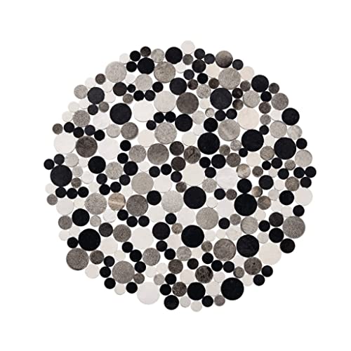 Tapis rond noir et blanc en cuir vache, taille 140cm