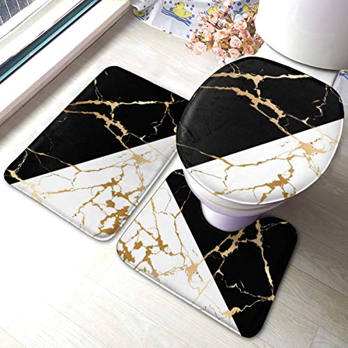 Ensemble tapis bain antidérapant doré marbre noir et blanc