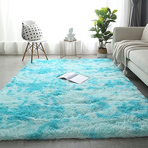 Tapis doux anti-slip moelleux salon, grand couloir bleu mari...