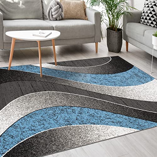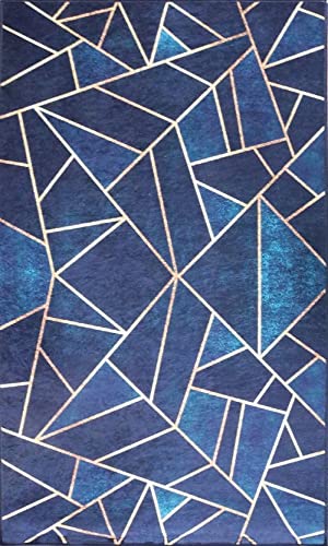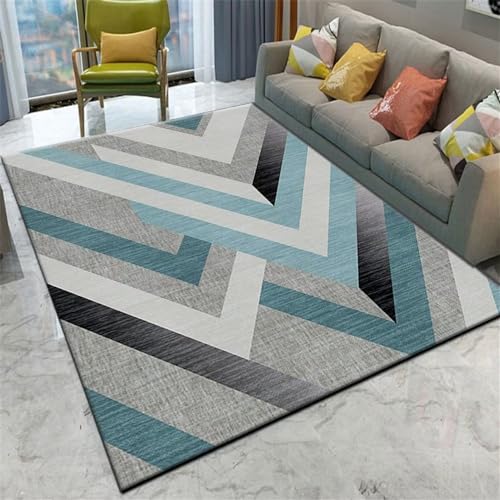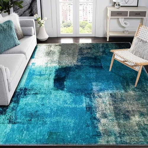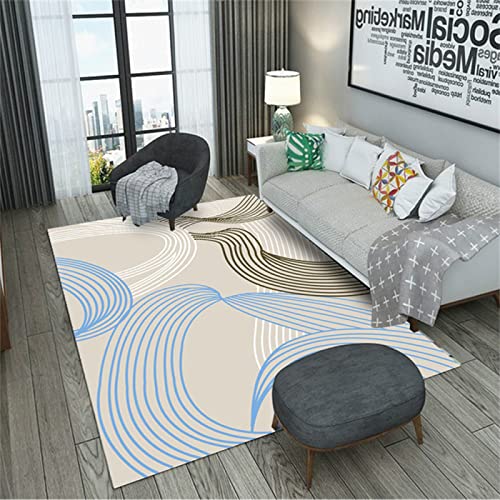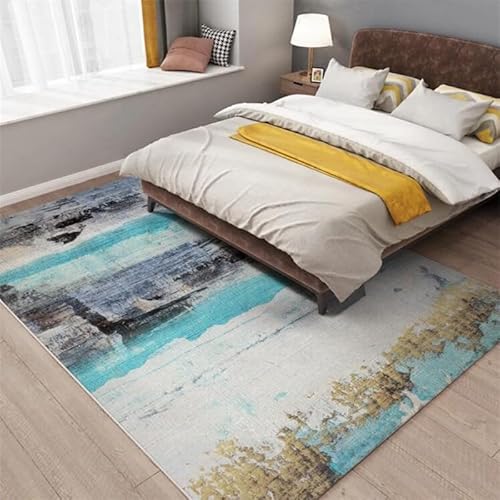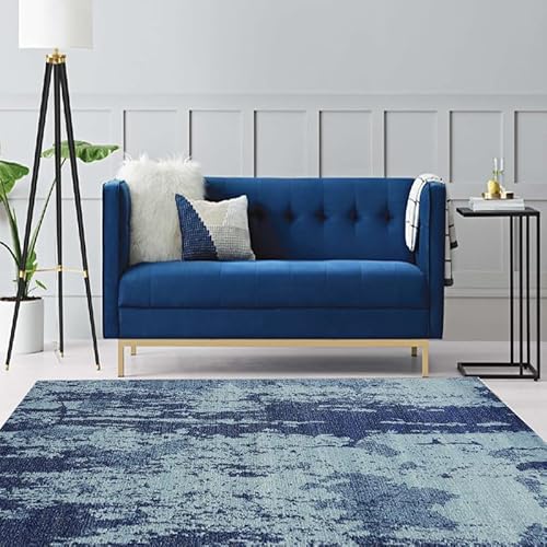 Tapis Abstrait Moderne Tapis Salon Bleu Poils Courts Lavable...