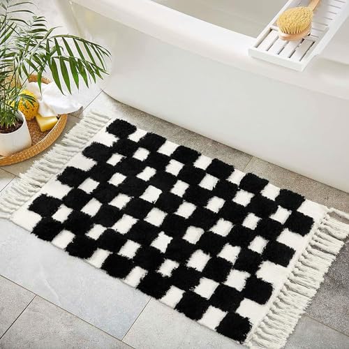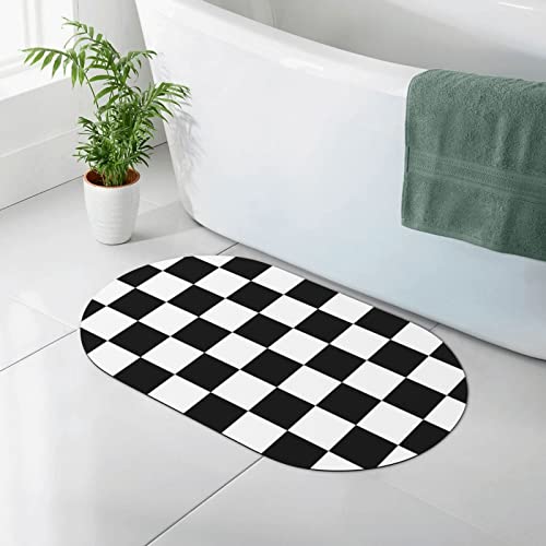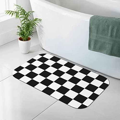 L Tapis de bain à carreaux noir et blanc, terre de diatomées...