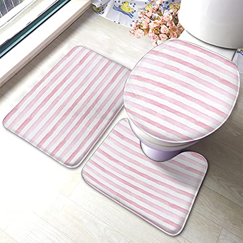 Tapis de Bain Ensemble 3 Pièces Rose Blanc Rayures Amoureux...