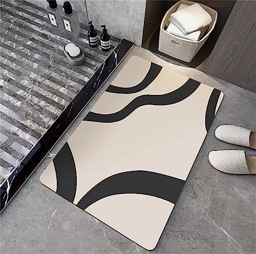 L Tapis de Bain Carreaux Noir & Blanc Diatomite Absorbant Sé...