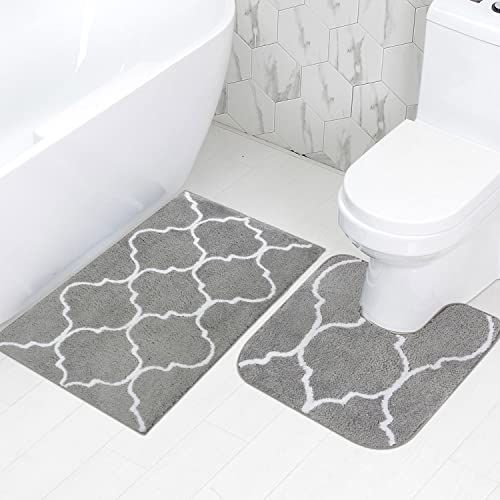 Tapis de Bain Antidérapant Doux Absorbant Gris Lavable