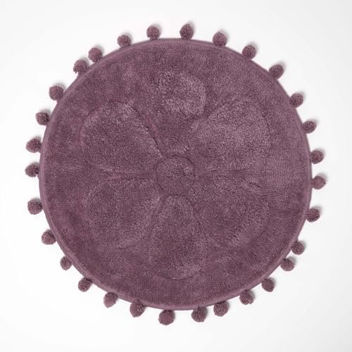 Tapis de bain rond tufté à motif floral et pompons fabriqué...