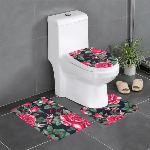 OTRAHCSD Tapis de bain floral rose 3 tapis + housse abattant...