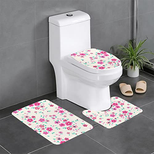 OTRAHCSD Tapis de bain floral rose 3 tapis + Housse d'abatta...