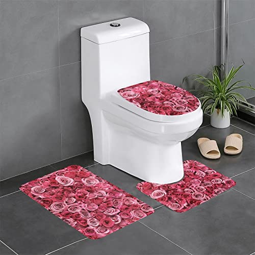 Ensemble Tapis de Bain, Pétales de Rose pour Toilette