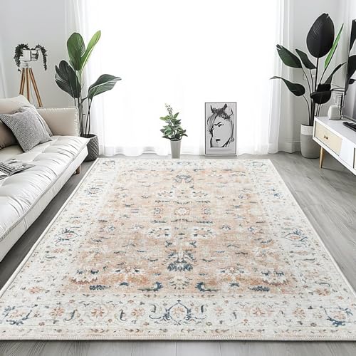 Tapis de salon floral vintage rose Persan courts antidérapan...